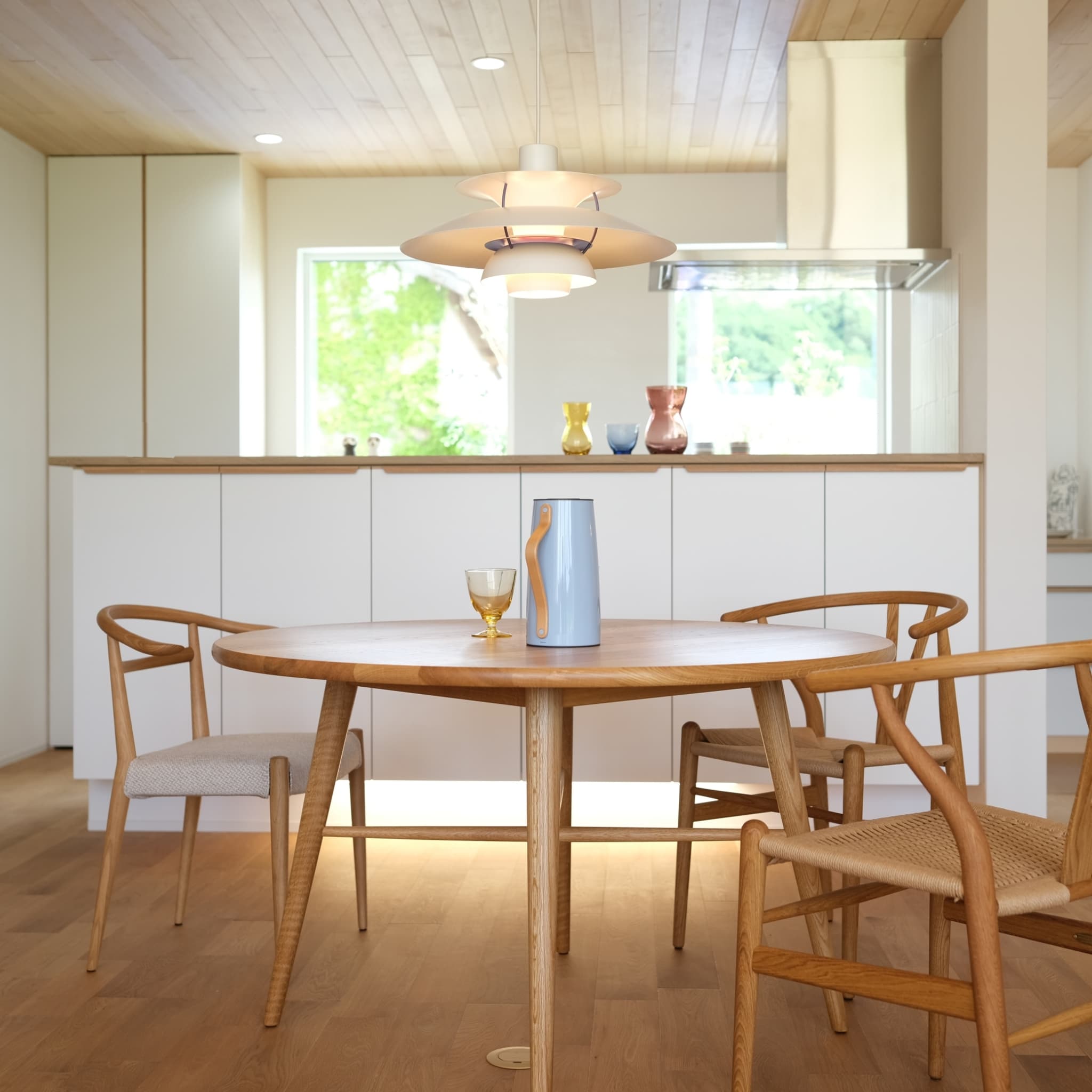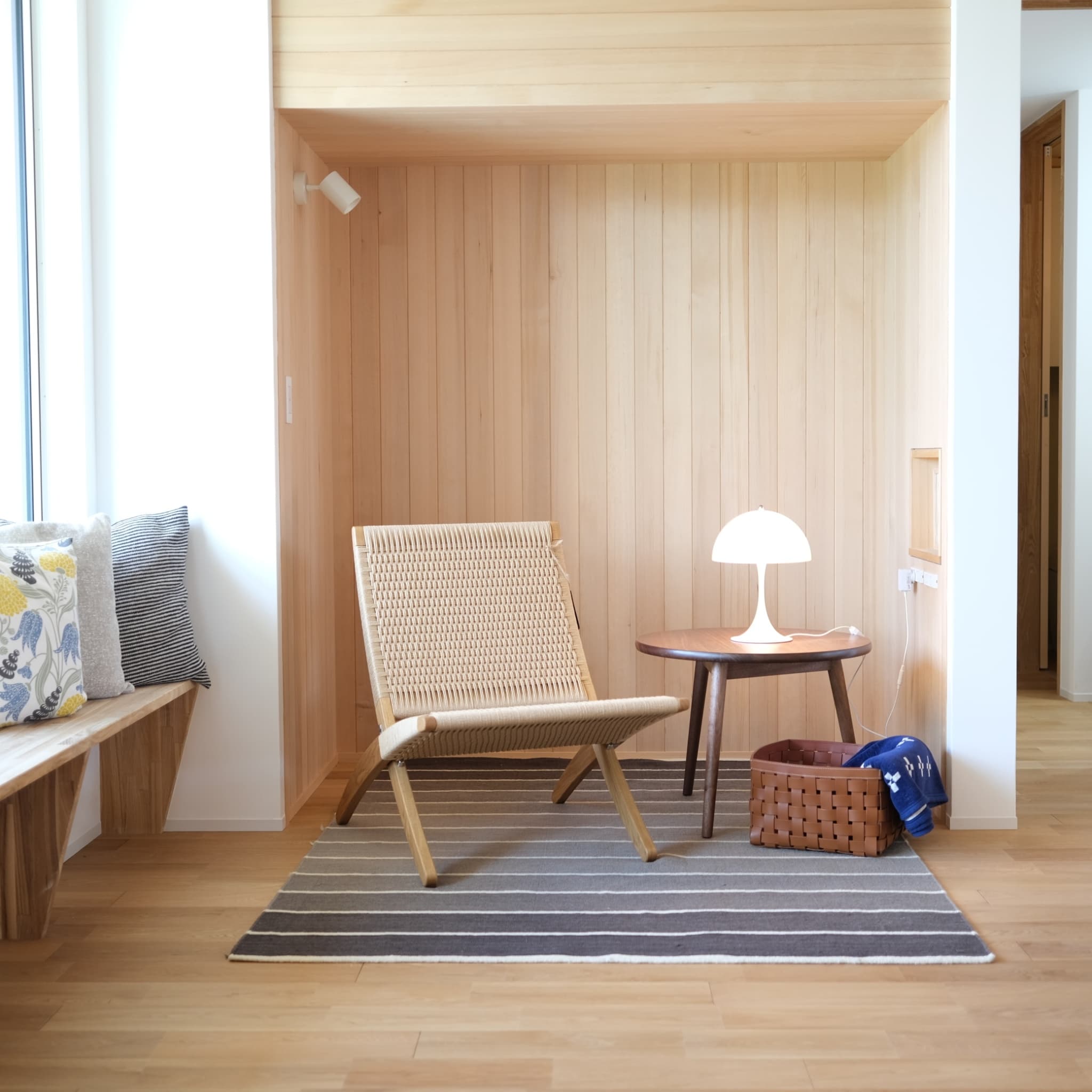 階段の上がり降りのない平屋の家。建物が大きくなりすぎないように、小さくまとめた為、家事動線も効率よさそう。リビングにはたくさんの居場所を作りました。家族で楽しく過ごせそうです。