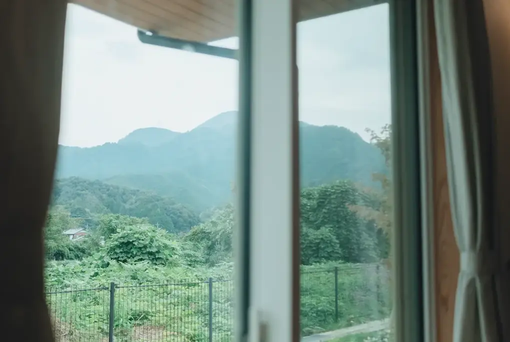 南側のリビングの大きな窓からは、美しい山並みが広がっています。
