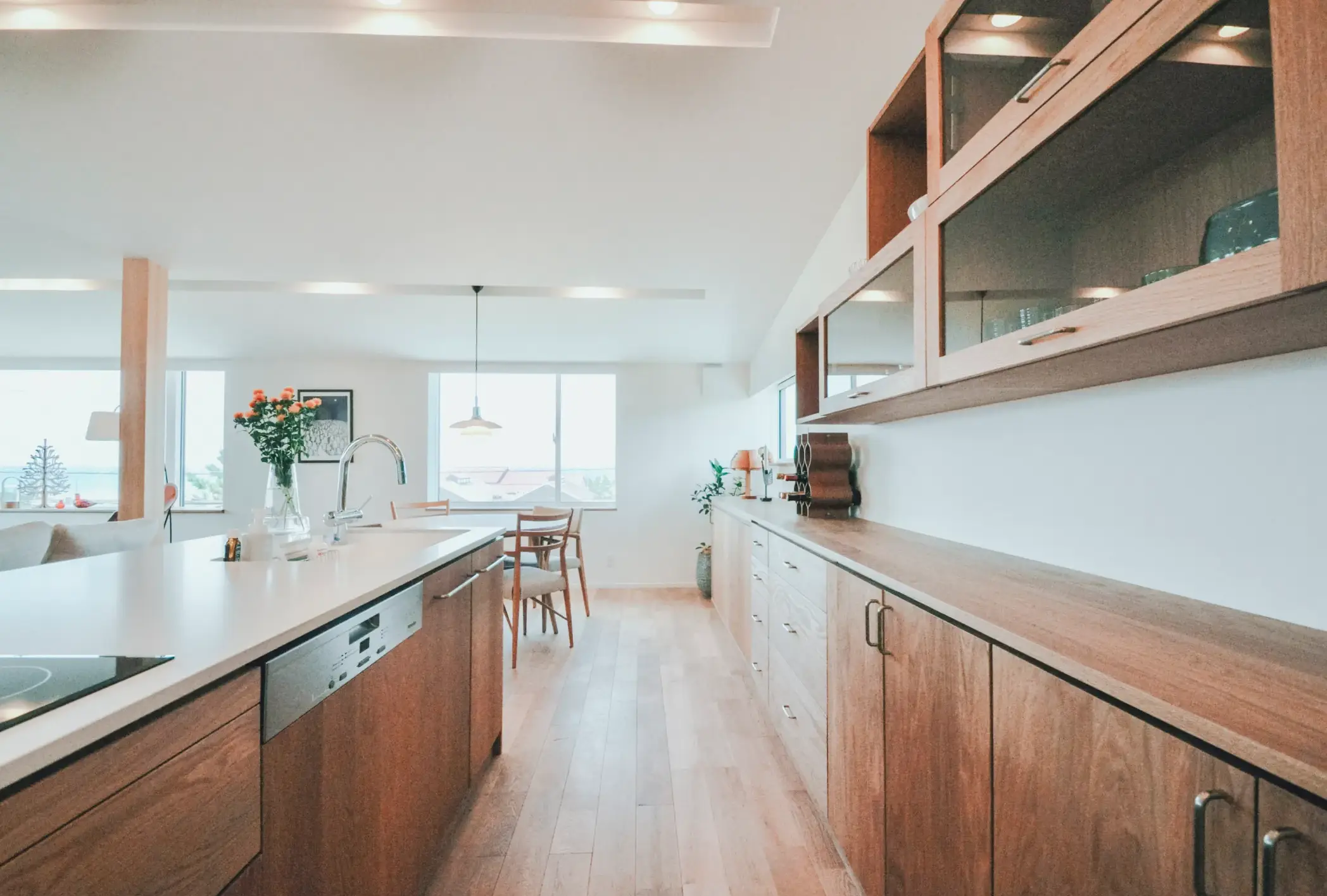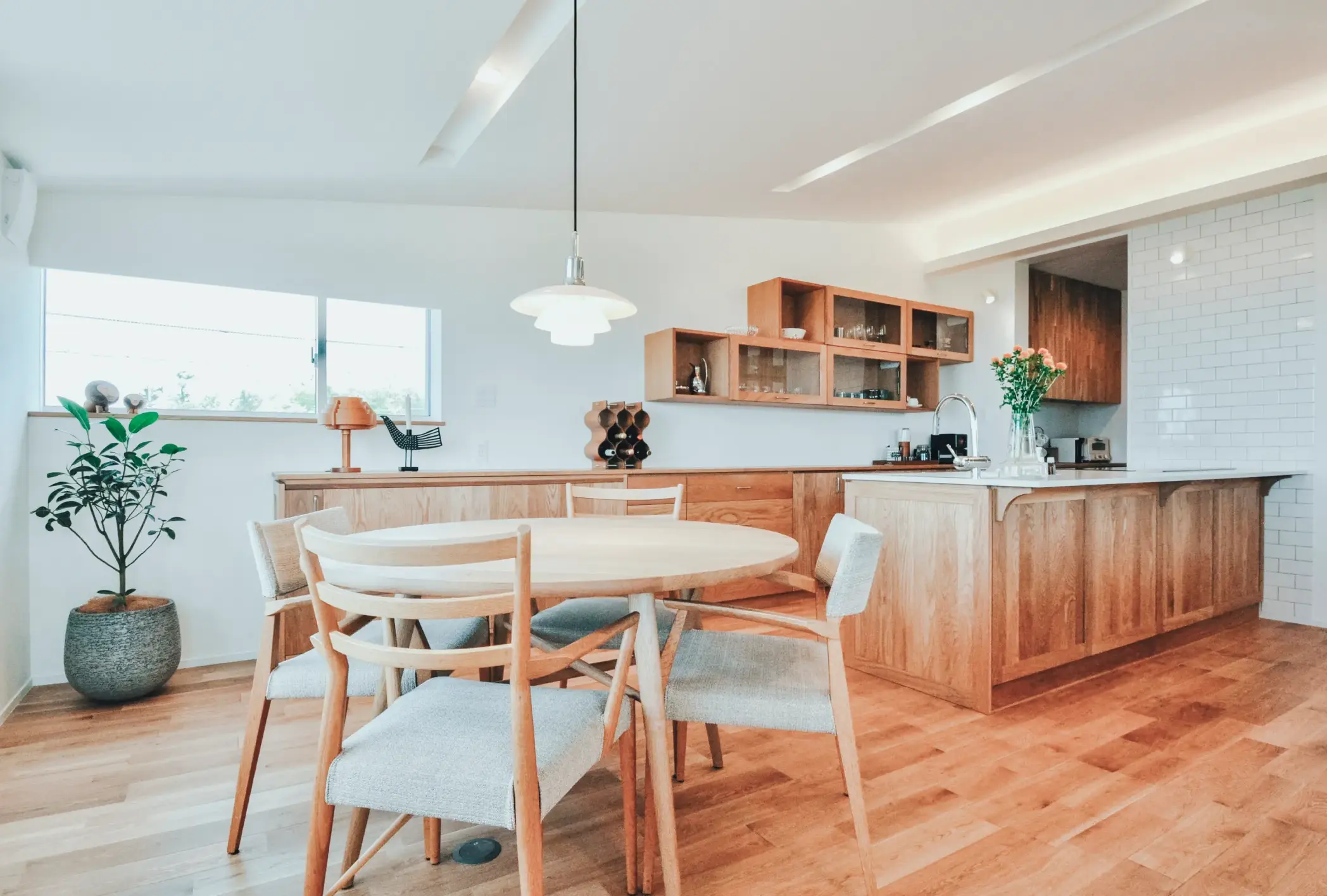 家族の気配がつながる暮らしを意識しました。1階には柔道に打ち込むお子様が練習できる柔道部屋をつくり、3階のリビングからでも頑張る息遣いを感じられる設計に。稽古に向き合う姿を自然と見守れ、「もう一本」という声が日常の中で交わされます。1階から3階の生活空間を縦につなぐことで、家族それぞれの時間を尊重しながらも、一体感のある住まいを実現。最上階から望む海の景色が、忙しい日々にそっと余白を与えてくれます